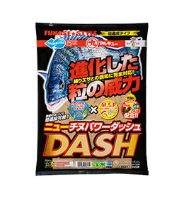 遠投も視野に入れていたので、まとまりとネバリを持たせた配合にした。さらに練りエサを多用する事も多くあるので、練りエサ対応の「ニューチヌパワーダッシュ」のブレンドでしっかりとまとまりを良くして遠投性を高めて、ピンポイントを攻める事が出来た。