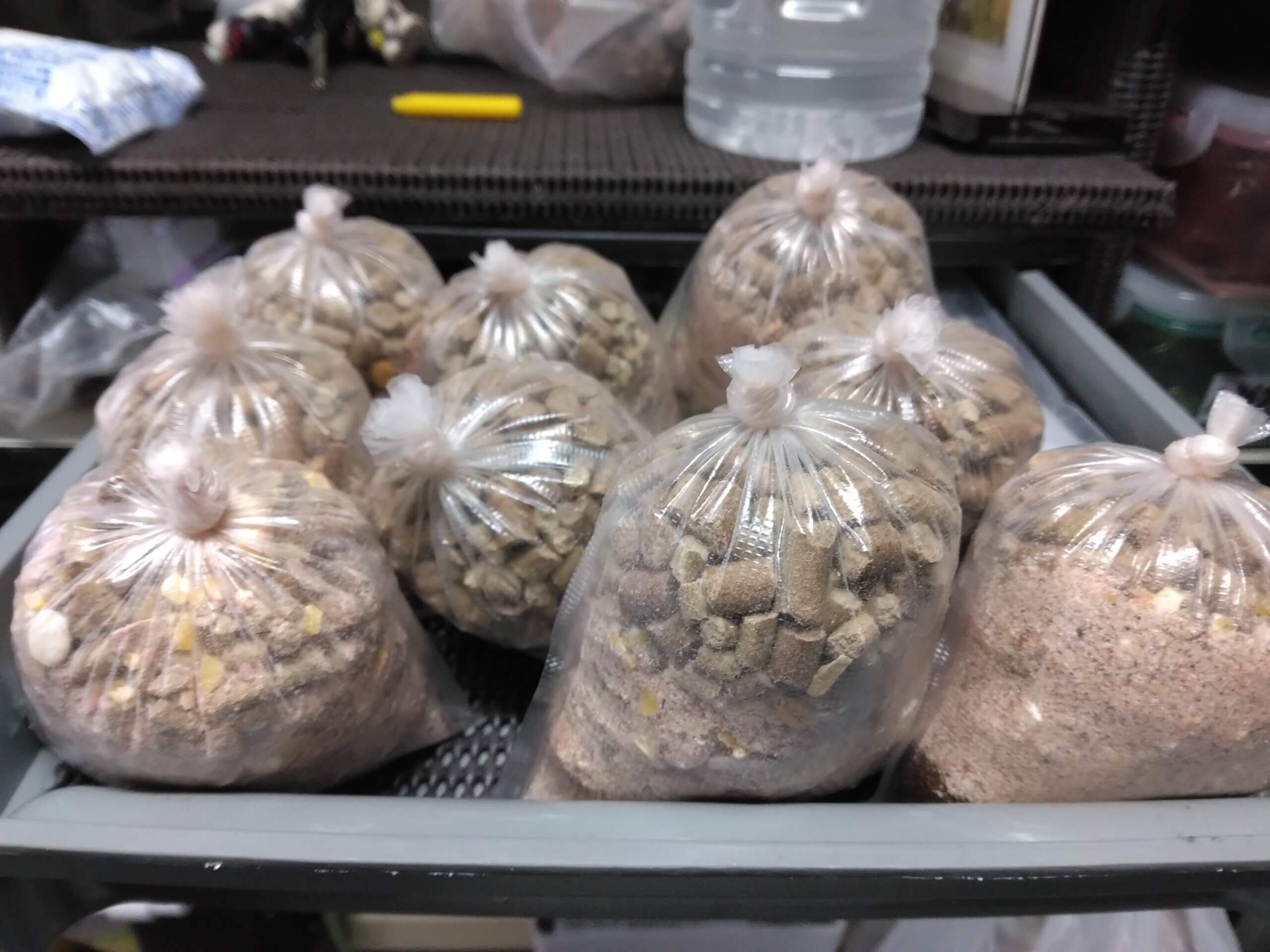 「巨鯉Ⅱ」「鯉パワー神通力」「まきえペレット」は水温に関係なく大型が釣れる。去年から配合は変わらない。