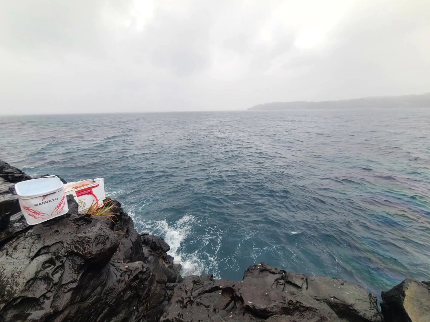 台風の合間に東伊豆・地磯へ釣行してきました。台風からのウネリが残り北東の風が10m弱吹く予報でしたが風はそよそよ程度でした。しかし安全を考慮して釣り場を確保。早速スタートするも魚の活性が悪く苦戦しました。時間がたつにつれ2~3ヒロ程のタナで付けエサが取られます。タナをきめて攻めると本命に出会うことができました。これから連打!っといきたいところでしたが、潮の変化で全くメジナの気配がなく、深く入れ込むと東伊豆では珍しいイサキがヒット。何とか1尾を追加するのがやっとでした。