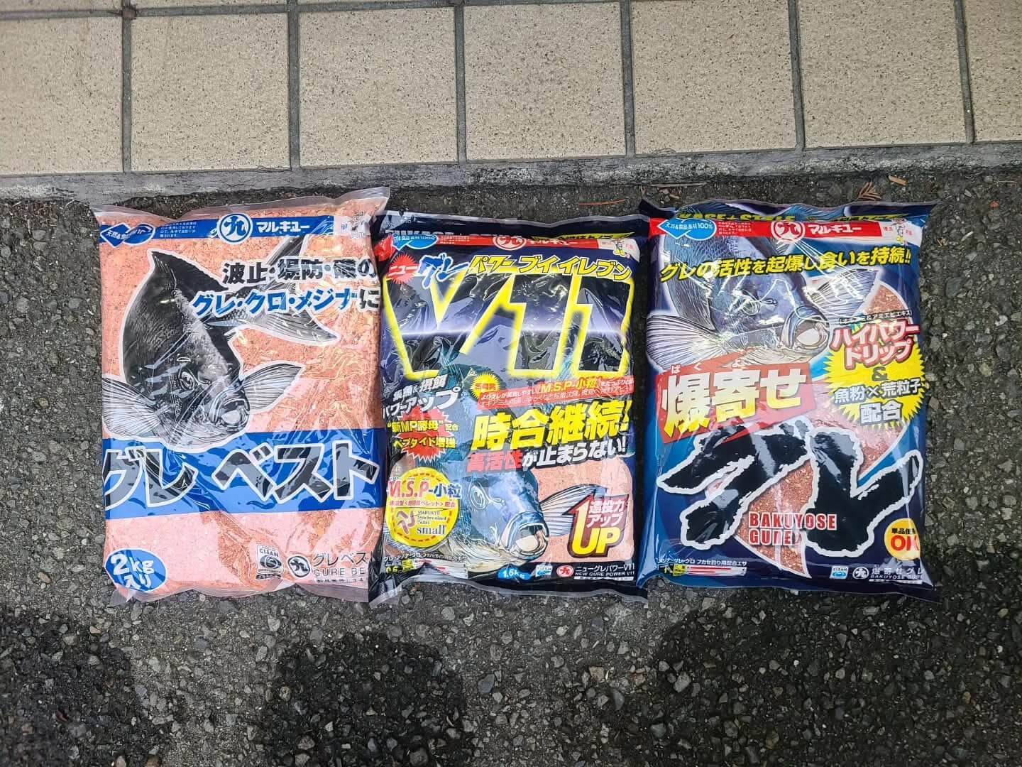 配合エサ:「グレベスト」「ニューグレパワーV11」「爆寄せグレ」