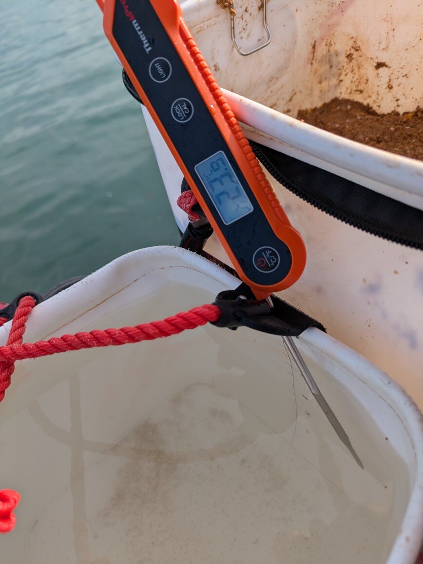 大潮なので午前中は下げ潮激流ですが、このポイントは流が早いほど釣れるイメージです。