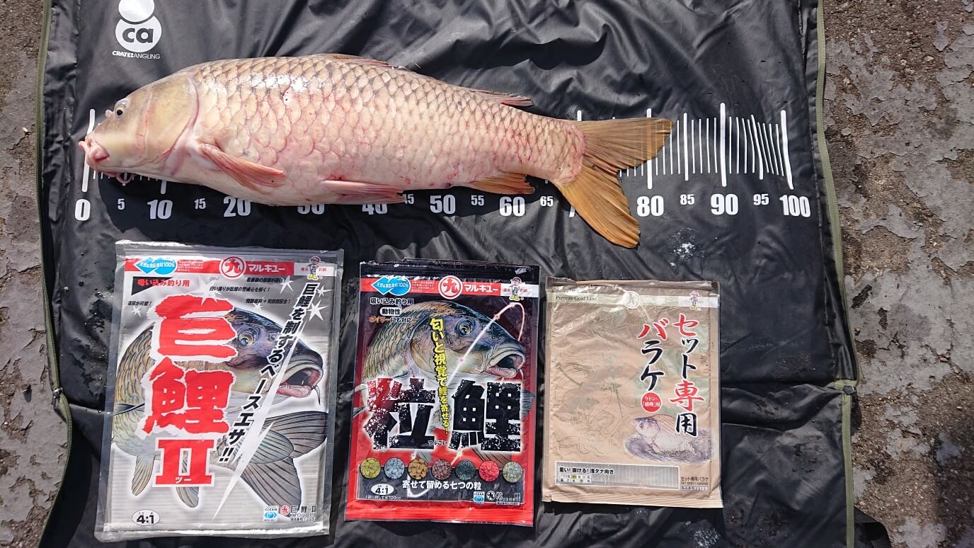 配合エサ:蒔き餌・吸込み餌 「巨鯉Ⅱ」(1)「粒鯉」(1)「セット専用バラケ」(0.5)「鯉にはこれだ」(適宜)