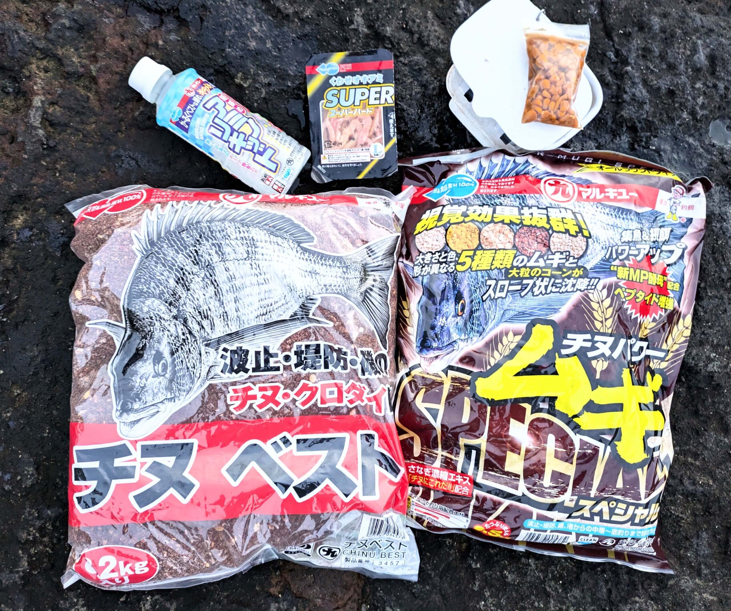 配合エサ:「チヌパワームギスペシャル」1袋半++「チヌベスト」半袋+オキアミ3kg