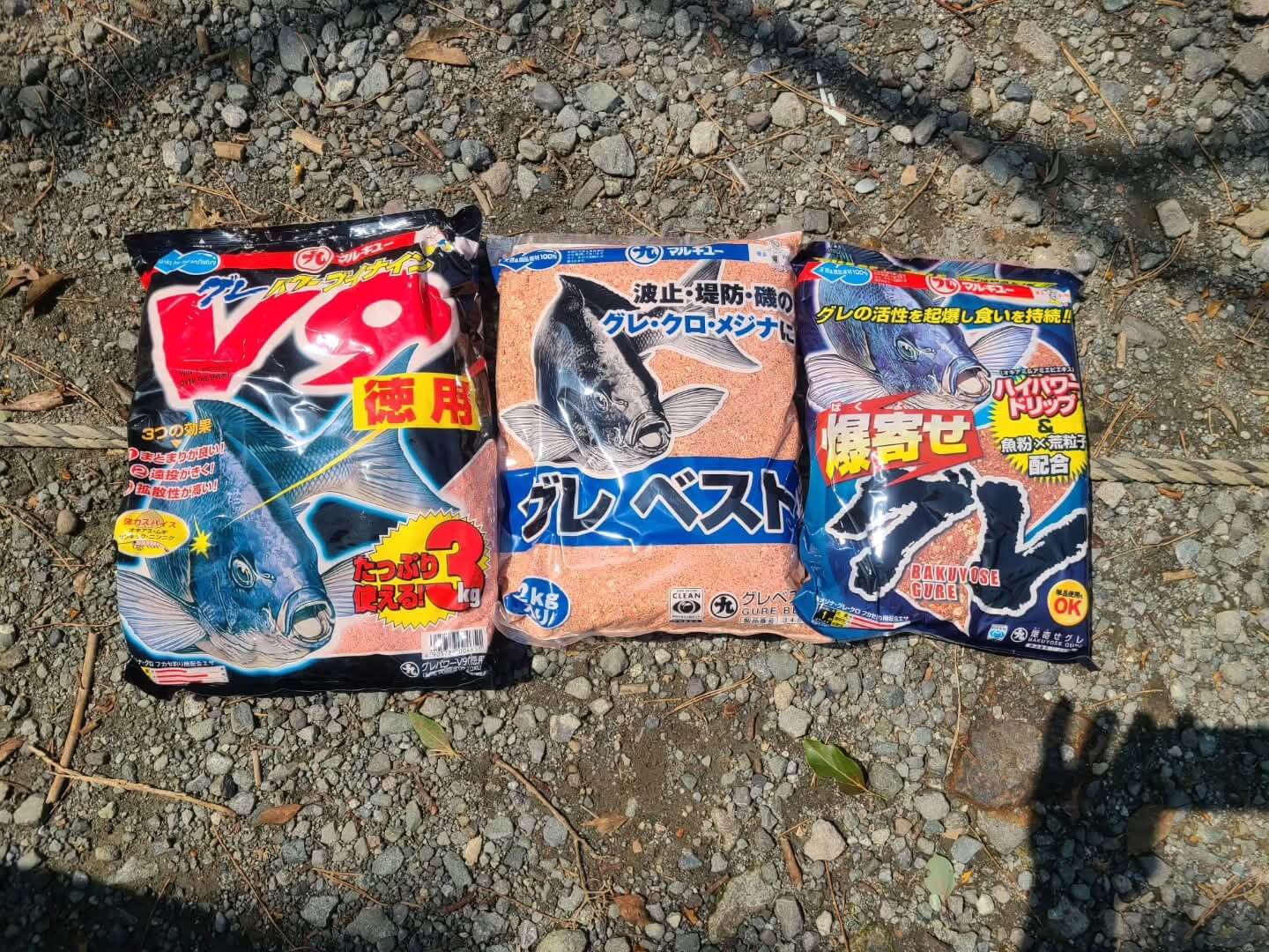 配合エサ:「グレパワーV9(徳用)」「グレベスト」「爆寄せグレ」
