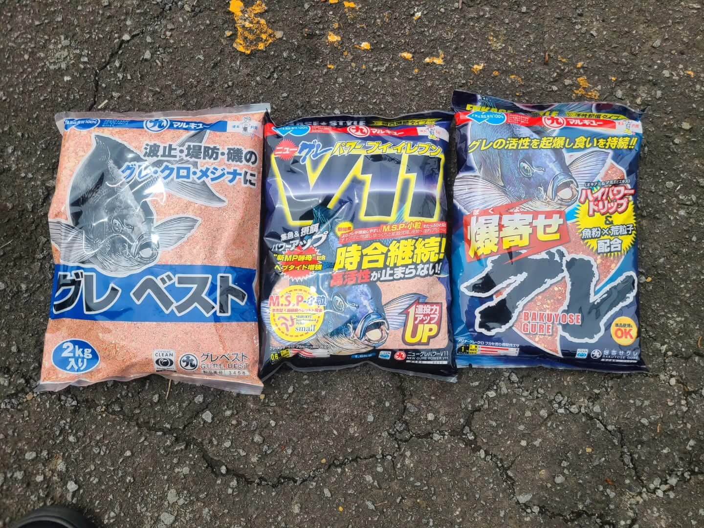 配合エサ:「グレベスト」「ニューグレパワーV11」「爆寄せグレ」