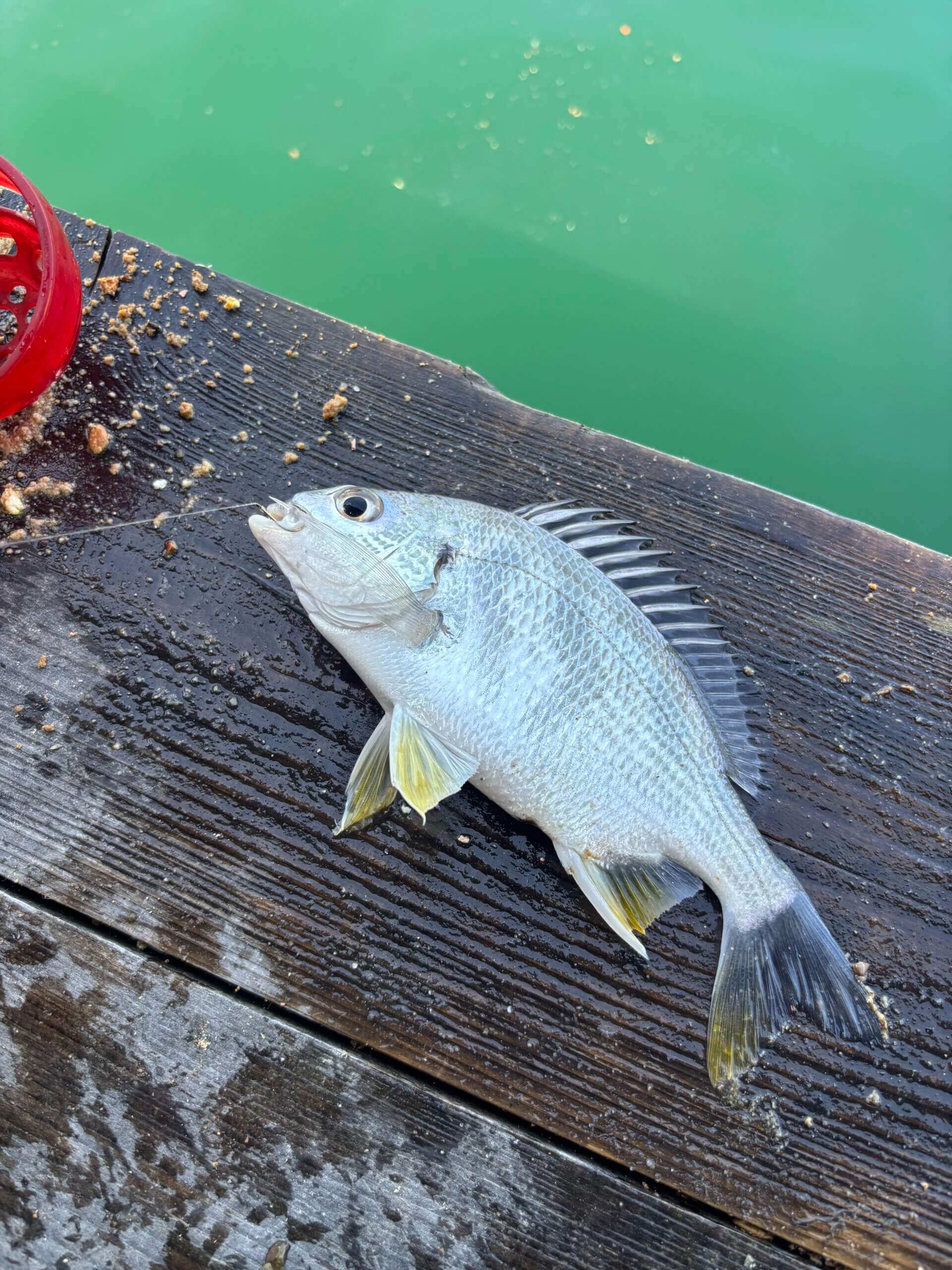付けエサは「くわせオキアミ食い込みイエロー」と「ハイブリッドクロスF2」の複合エサと「ハイブリッドクロスF2」の単体で釣れました。